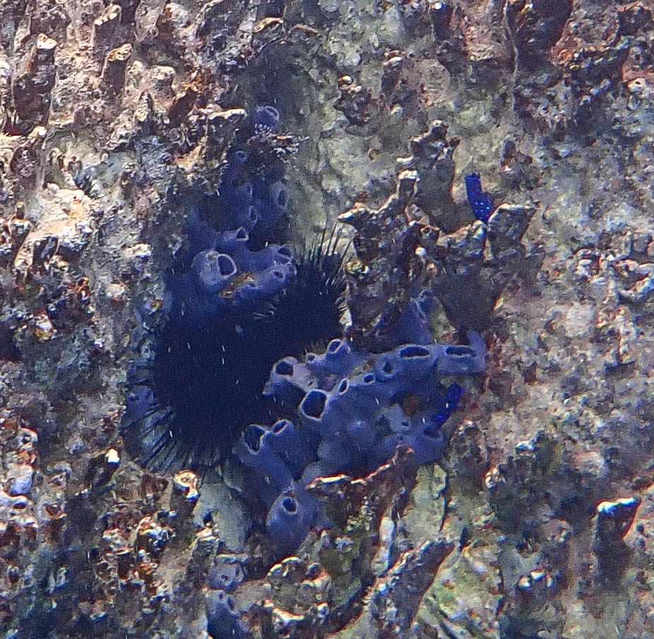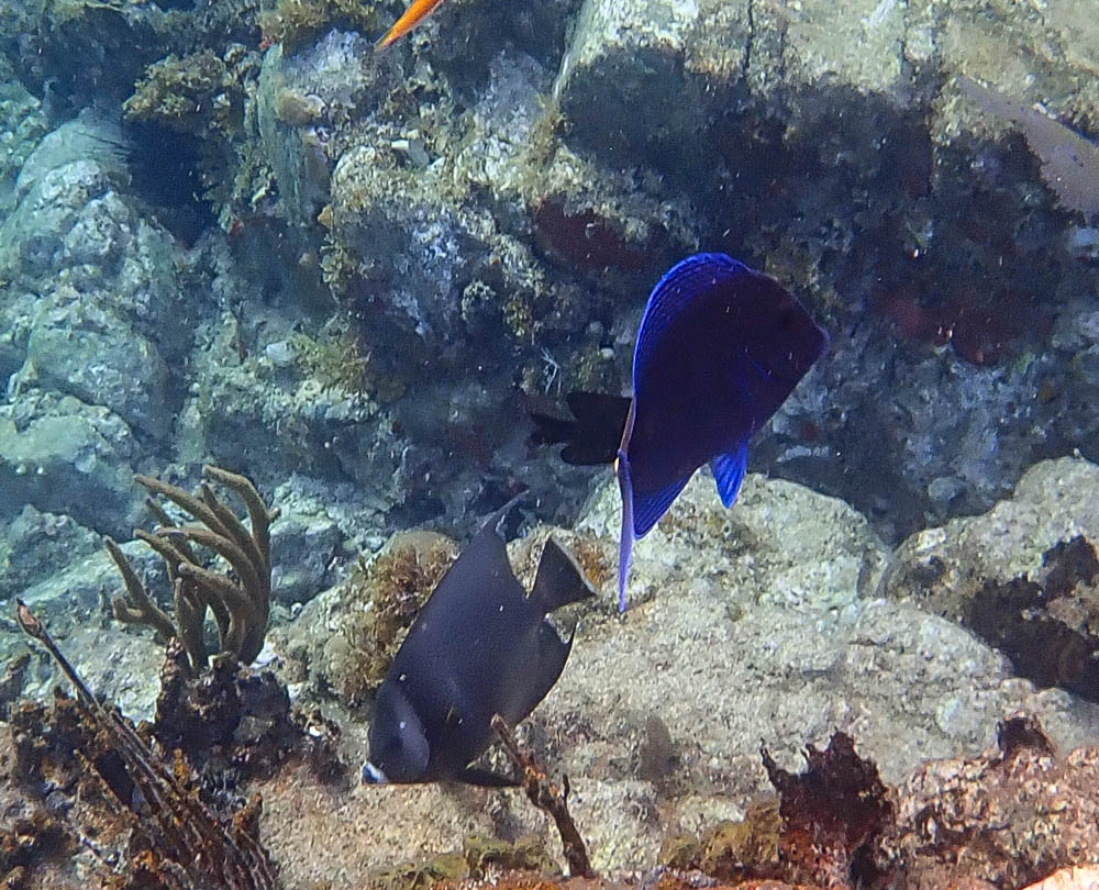 After breakfast, we snorkeled a different location of Lameshur Bay. This is another new fish we saw. Kind of looks like it’s glowing blue around the edges. Also some really colorful purple sponges,