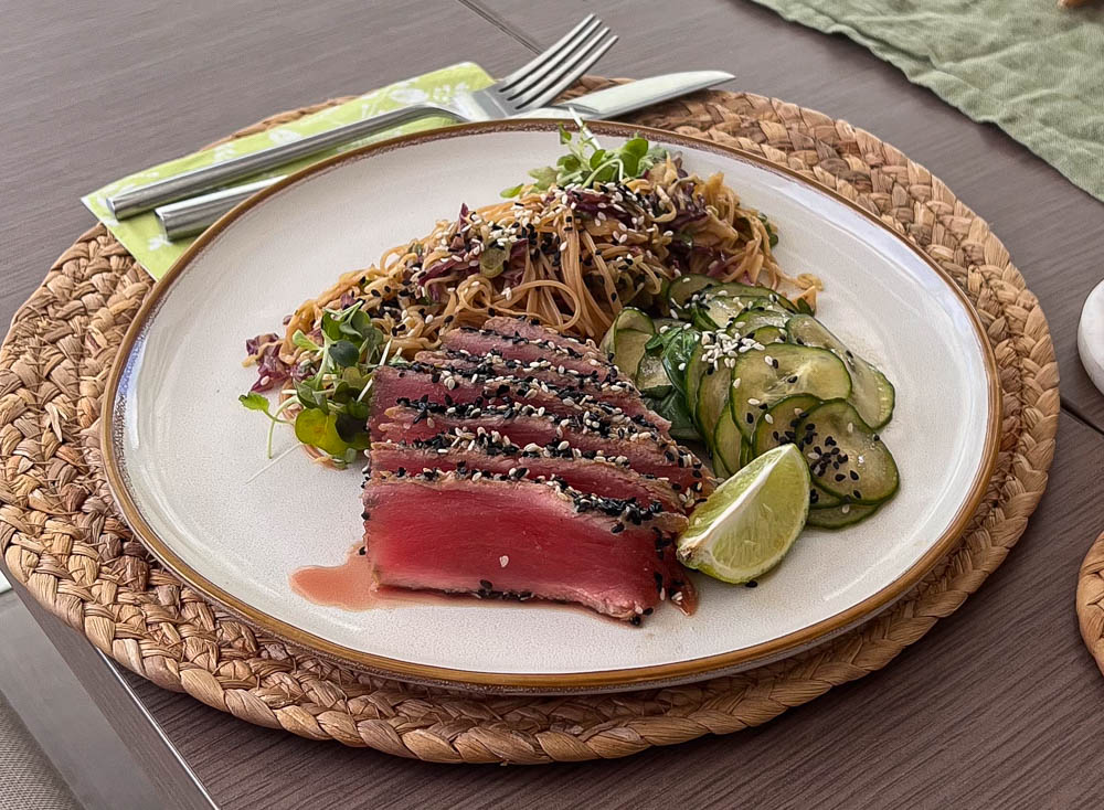 Before jumping in the water, we had lunch. I had seared Ahi Tuna, Jeff had sea bass.