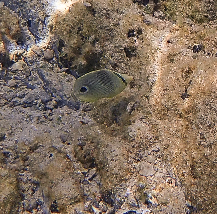 We see this little fish – a Four Eye Butterflyfish – around a lot. But they are so quick it’s very difficult to get a picture of them. Got lucky with this one, though.