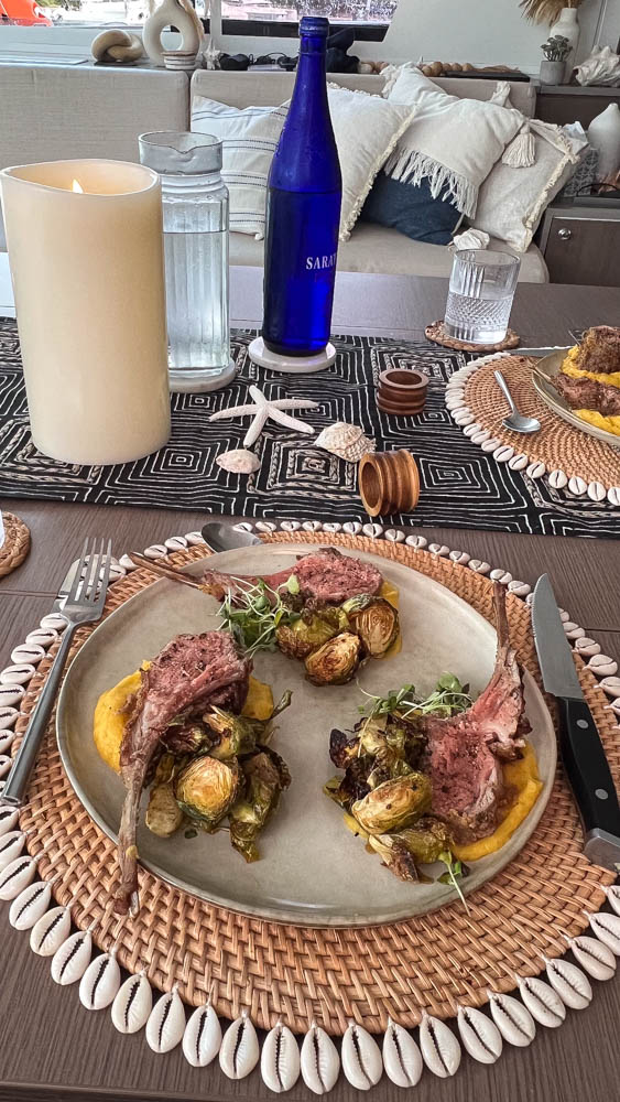 And, of course, Casey made us another fantastic meal. This time, we had lamb chops over squash, with roasted Brussels sprouts.