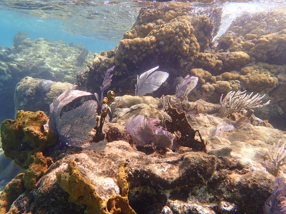 Other than the turtles, there were a few nice spots to snorkel and see other sights. Here you can see an example of what it looked like. I love all the purple sea fans – they are so graceful moving back and forth with the current.
