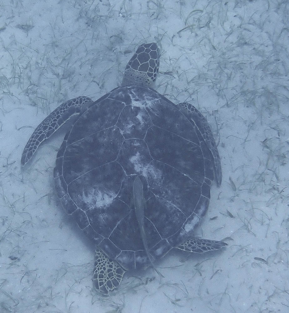 We saw another turtle after this, and it had two fish swimming along with it under its body. This picture of that didn’t come out very good.