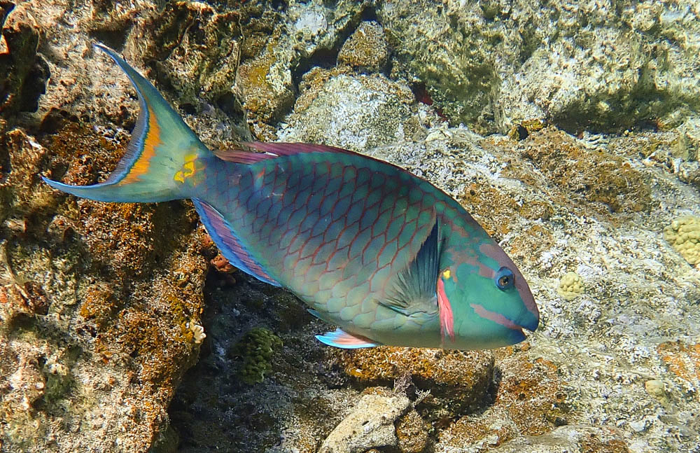 There are a lot of Parrotfish down here in the Virgin Islands. Here is a great picture of a super-colorful one…