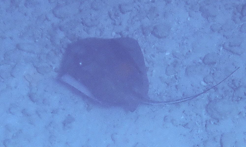 We were lucky to see a stingray swimming by in the depths below us. It was deep, so hard to get a better picture than this…