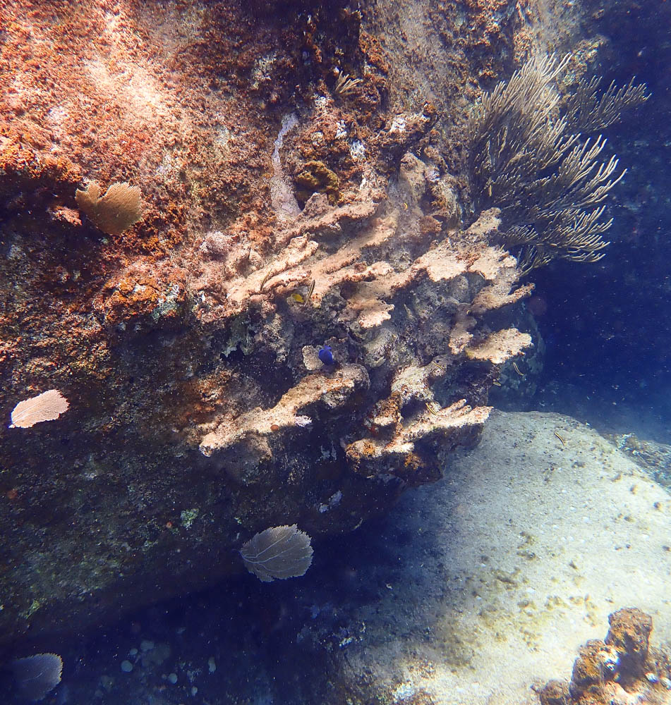 This was a neat wall of coral shelves and some branching soft coral. This entire area had all kinds of these growths on the huge boulders.