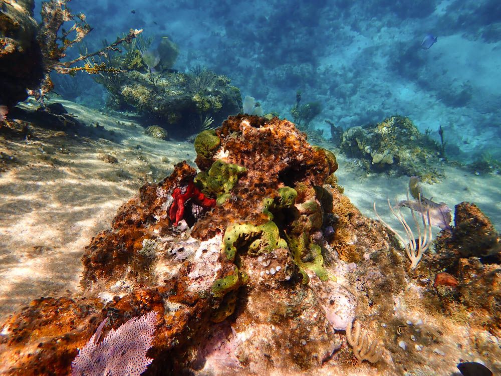Today, we stopped at two snorkel spots and then moved on to a third location to anchor overnight. The first spot is called Alice’s Wonderland ( at Ginger Island). It had a lot of sea fans and other soft things growing on the rocks.