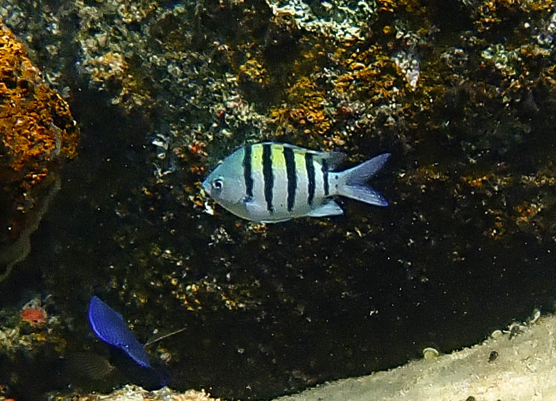 We see lots of these Sergeant Major fish everywhere. Typically, they are swimming nearby in schools, to it’s difficult to get good pictures. But, this little guy gave me a nice pose.