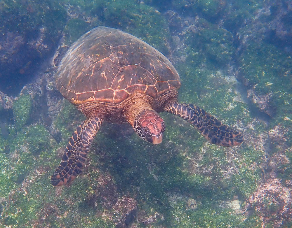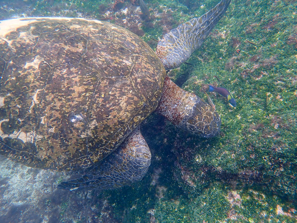Anyway, it wasn’t a very long snorkel, but we saw turtles, fish and a sea lion. A great shot of this turtle eating the green algae.