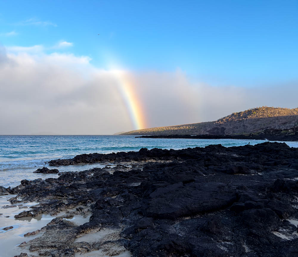 Amazingly, while we were on this beach, a beautiful rainbow was out. It was there for a long time, and we took a ton of pictures of it. Don’t worry, I’ll just post this one picture! It was amazingly colorful!