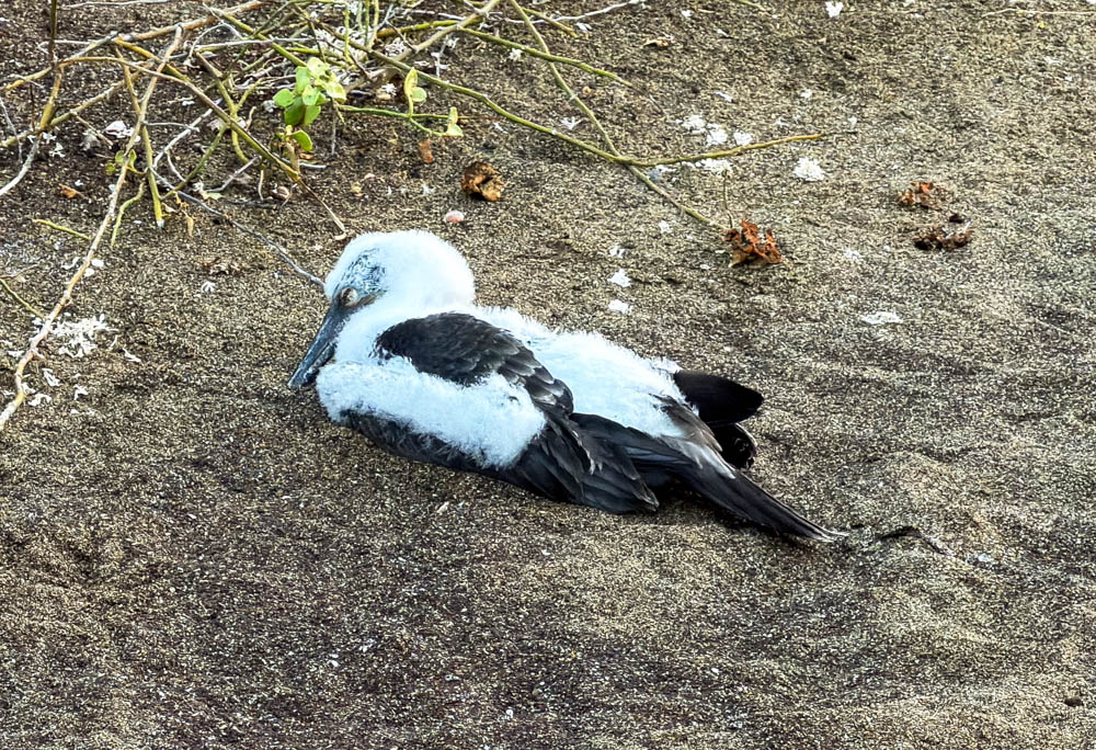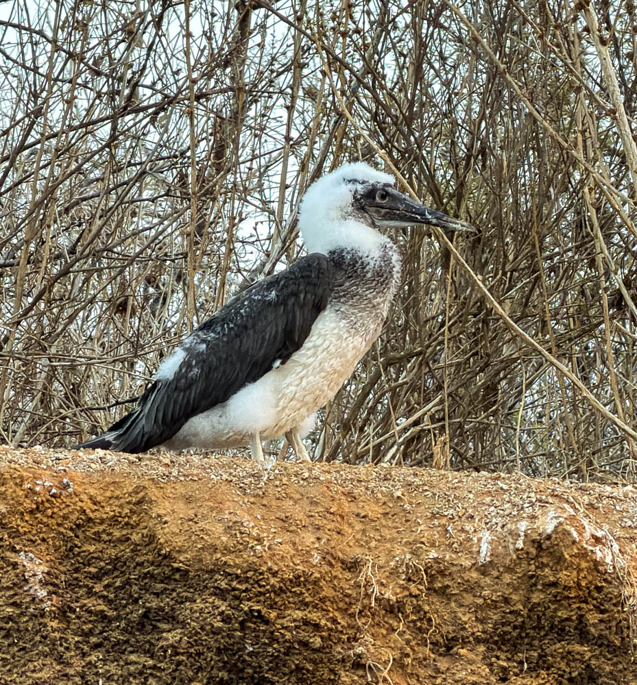 After the beach, we walked along a different path and saw these juvenile Blue Footed Boobies. First, we all saw this guy splatted on the sand. He looked like he was dead! But, he did move, whew! He was just sleeping on the ground. Blue Footed Boobies make their nests on the ground, so finding one sleeping there isn’t a big surprise.