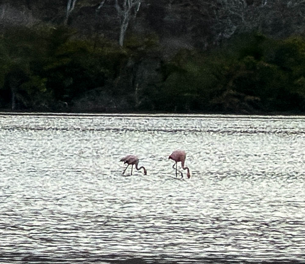 Surprise! Waaayyyy in the distance were a couple of flamingos! This crop of a zoomed-in picture isn’t great, but at least you can see them.