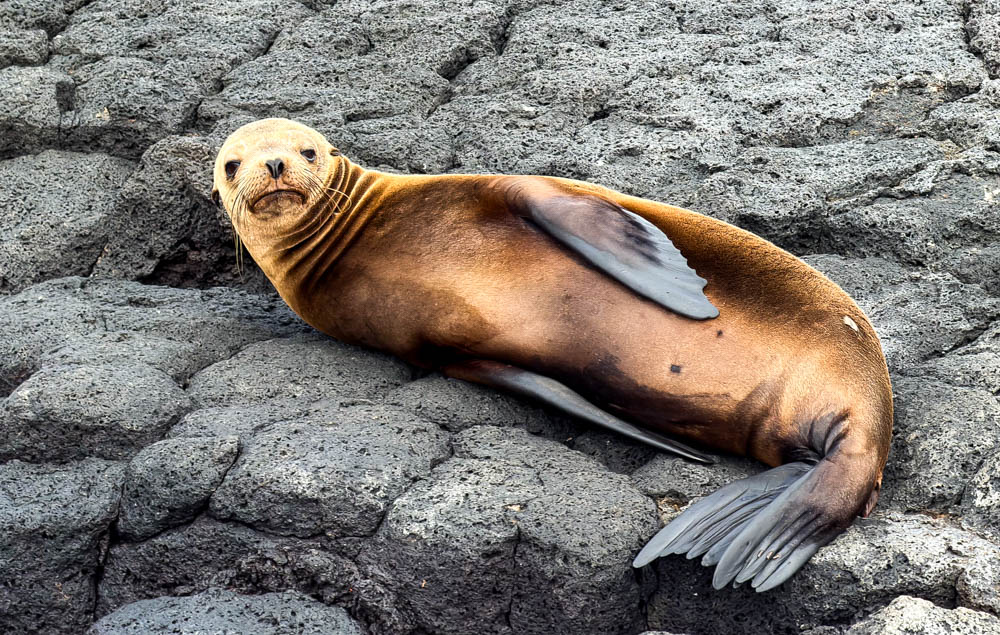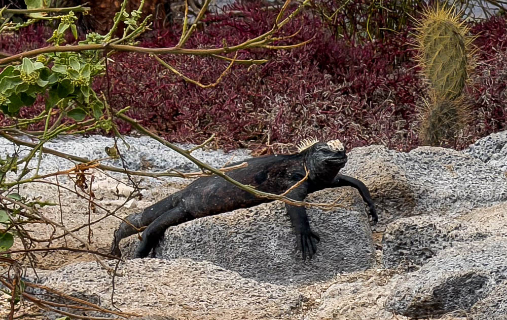 Around the corner, we saw this marine iguana draped over a rock – he sure looks relaxed!