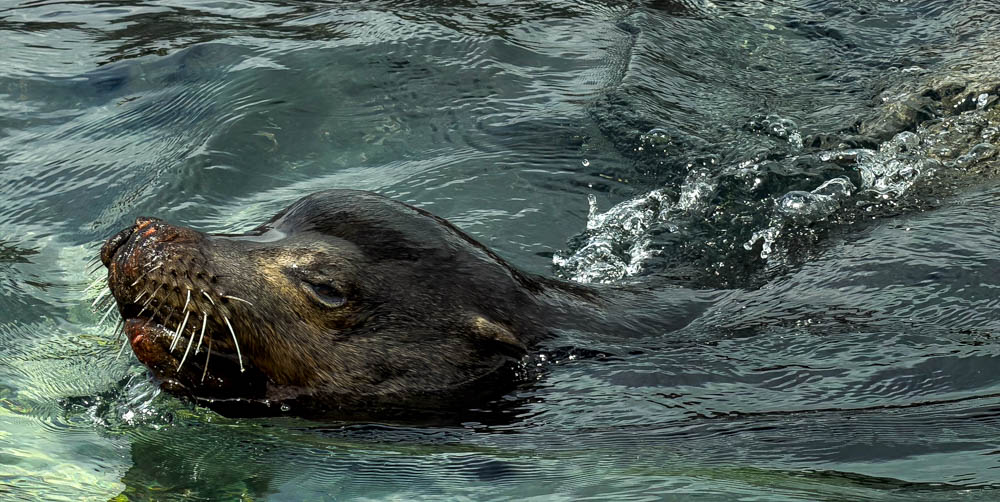 It’s interesting to see how brown the sea lions look once their fur dries. When they first exit the water, they look black. This picture is also great because it shows how sea lions can walk using all four of their flippers. They just stand up and go, unlike seals, who have to drag themselves along.