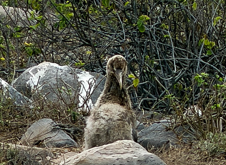 Amazingly, we saw a Waved Albatross chick! It was far away, so this is a zoomed photo of the large baby. They are supposed to hatch sometime early September. This is October, so this chick is maybe 4-6 weeks old. A big ball of fluff!