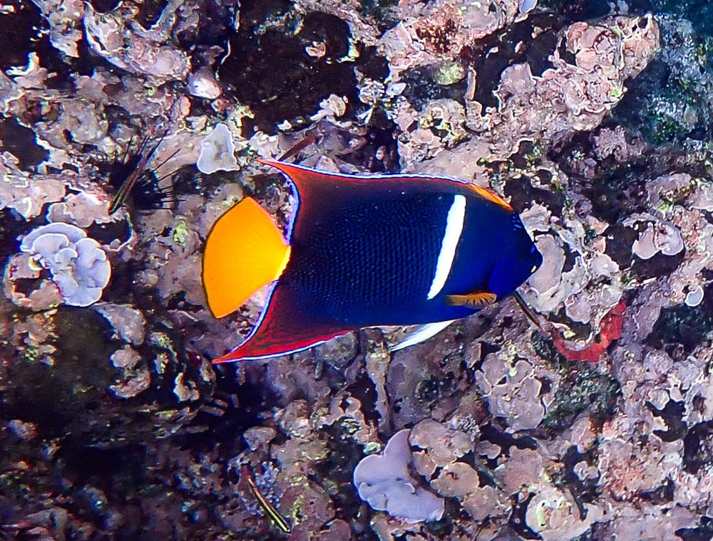 Of course, there were also fish in the water. We got a great photo of this King Angel Fish. Wow, their colors are stunning! Later, you’ll see pictures we took of small schools of these fish.
