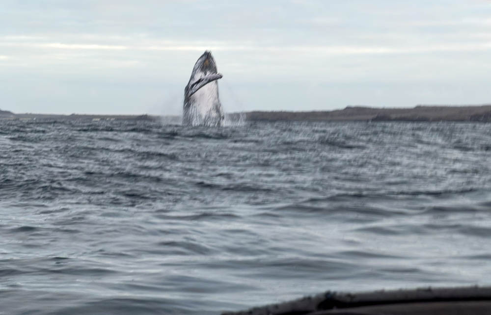 Initially, we weren’t sure if the whale breaching was mom or baby. Ha! When we finally saw mom breach after the calf – she was HUGE! You will see that amazing pair of breaches in the video below.