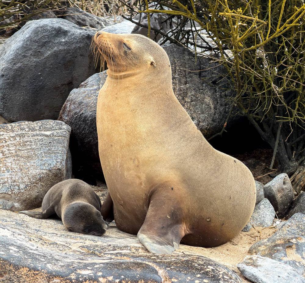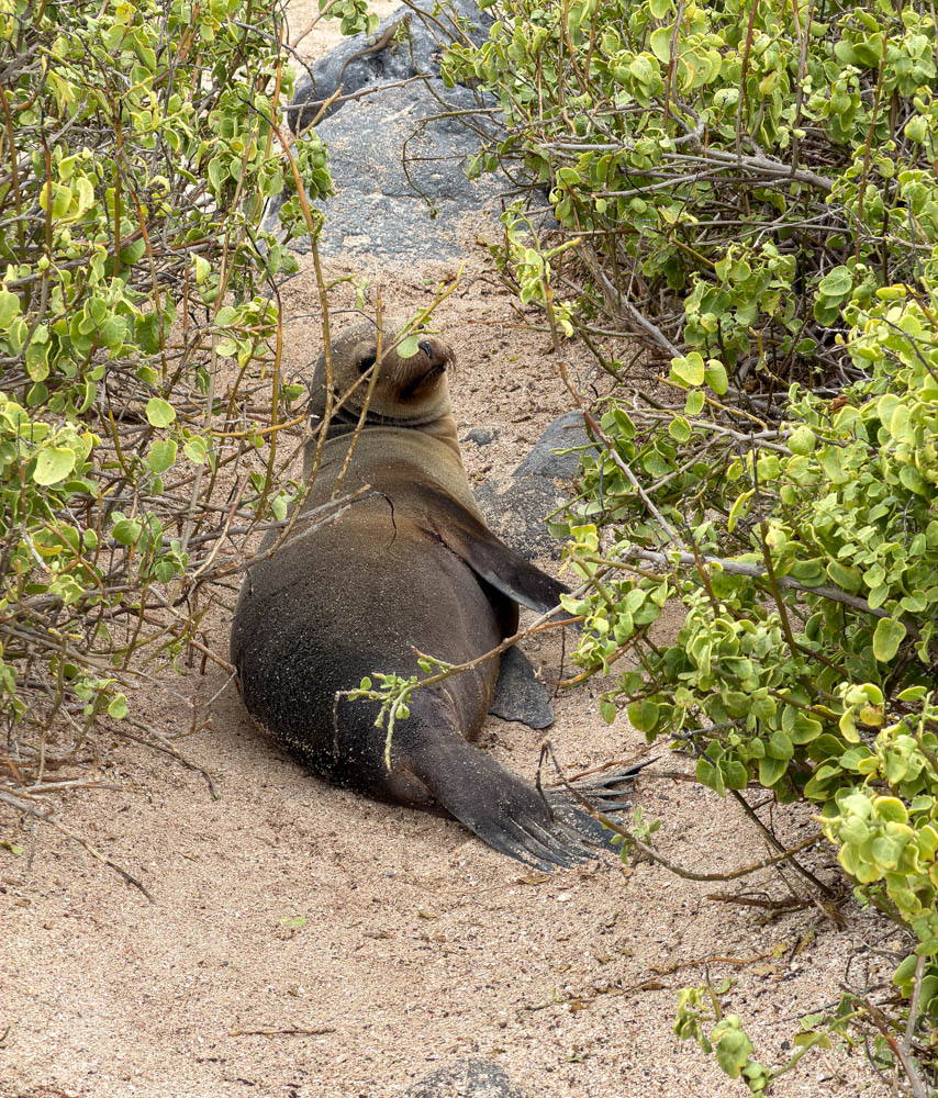 The trail snaked through this scrubby undergrowth, and every so often, down a side “trail”, we’d see lounging sea lions. Surprisingly, some of these were pretty far away from the water.