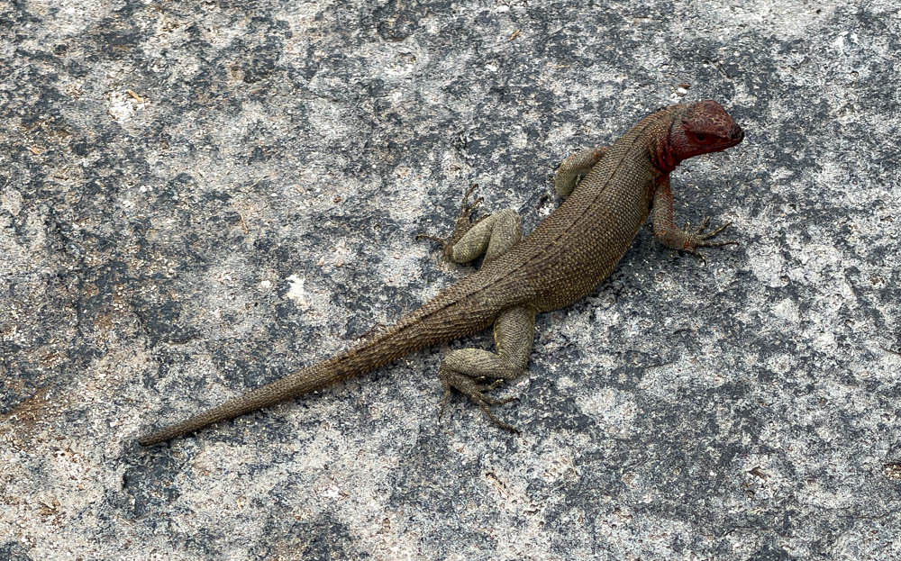 We saw a lot of these colorful guys here. As a matter of fact, they were all over the trail we needed to take. Yup, we had to step carefully around all these lounging iguanas!