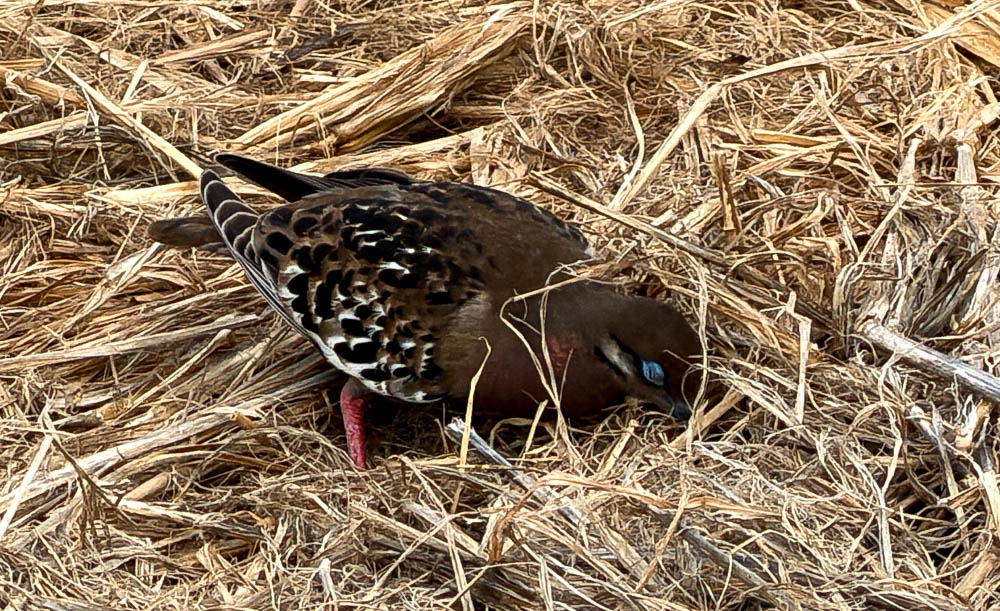Around the corner, we found a Galápagos Dove. We see them every so often, but they always have their heads down in the weeds, pecking for food. This was actually a good photo, considering most of the time his head was under those grasses!