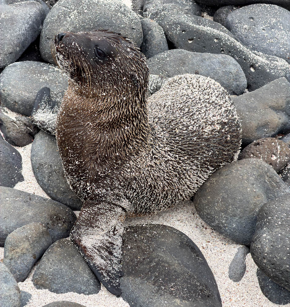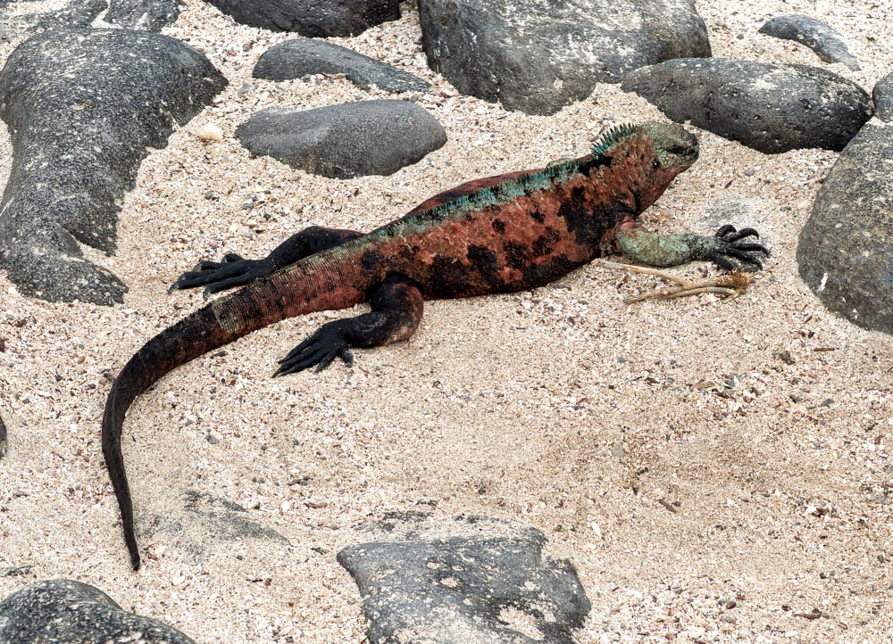 Along the water, we also saw more of the marine iguanas. These guys were wet, so they must have been eating in the water fairly recently. After that trip into the very cold water, they need to spend the day lounging in the sun to heat up again.