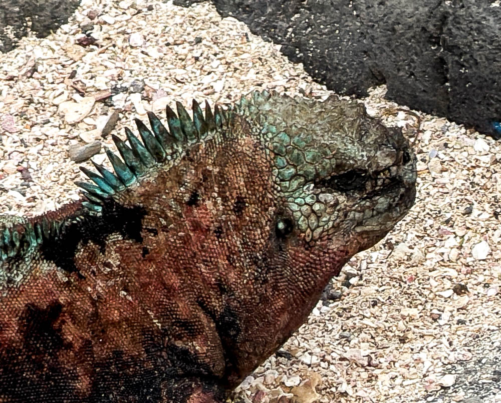 Our first stop was at Suarez Point. It’s a great island to see the colorful “Christmas Iguanas”. Male marine iguanas change color during the breeding season. This subspecies found on Española changes to the cheery green and red colors of Christmas! Wondering how colorful they are? Here you go…