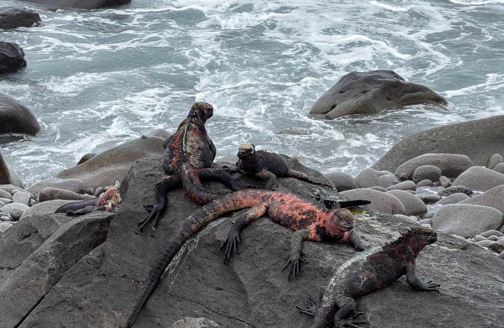 Marine iguanas in the Galápagos are the only iguanas in the world that swim down in the water to eat algae off the rocks. Later in our trip, we’ll snorkel with some of them!