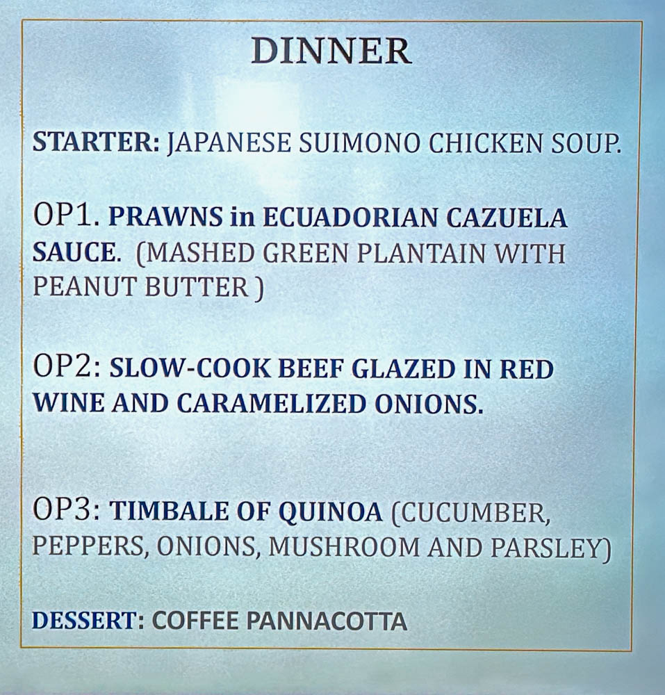 Time to head back to the boat for lunch! This time, we remembered to take a picture of the menus for the day. Here was the lunch menu…