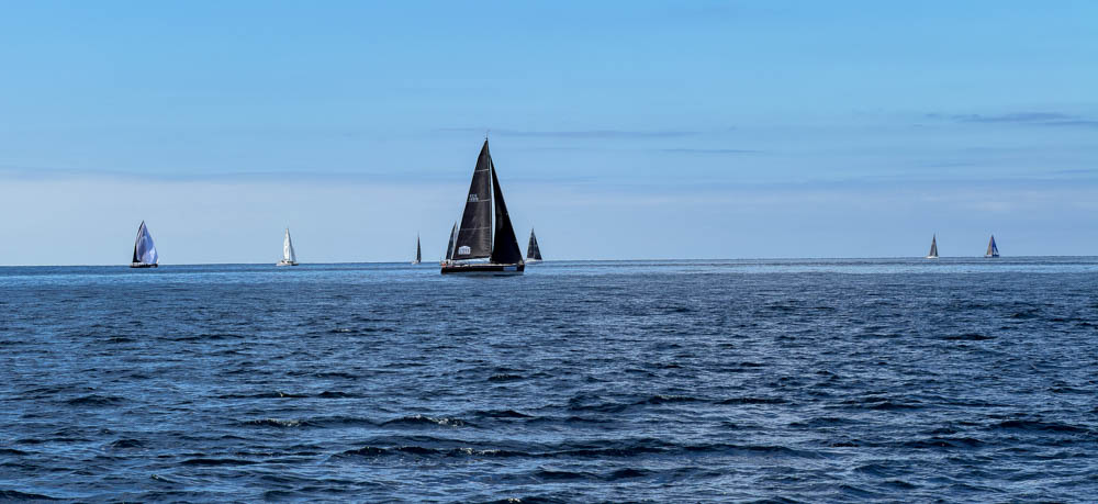 While we were navigating, a LOT of sailboats appeared far out on the horizon. It seems there was a sailing event. As we got closer, we could make out a few of the boats more clearly.