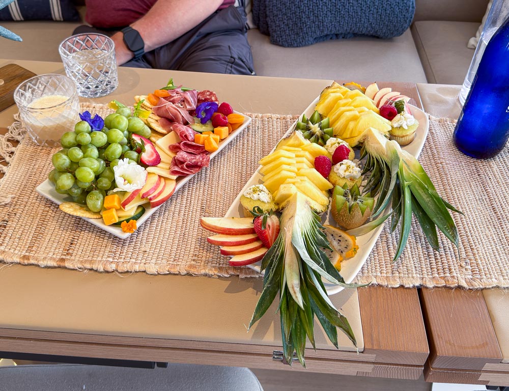 Although Julia had a beautiful lunch laid out for us, we took a quick look around the boat. Then, we dug into lunch. There were sandwiches, but the highlight was these delicious and colorful platters…