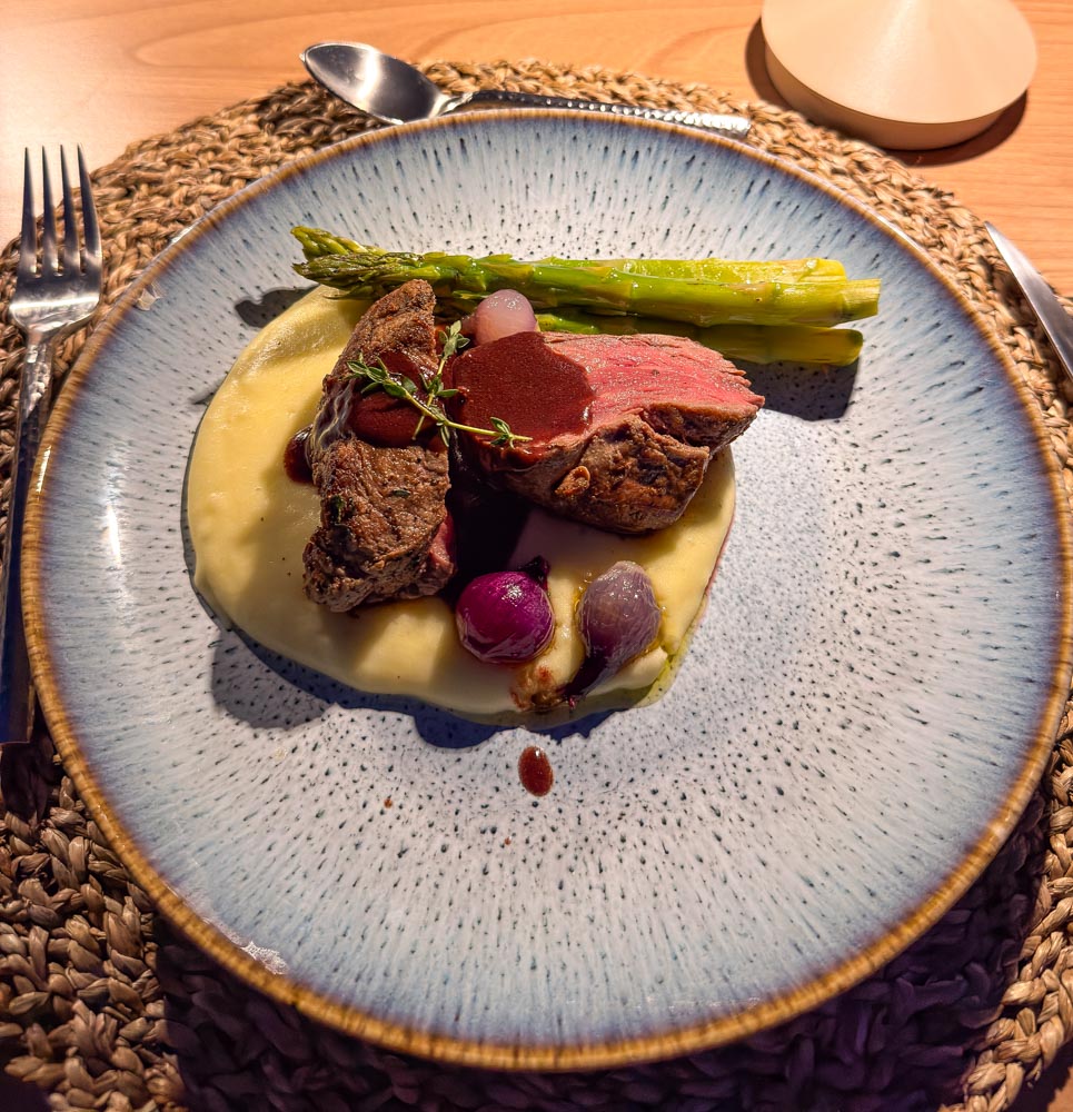 Yum! Julia made filet mignon with mashed potatoes, asparagus and these delicious little purple pearl onions. It was all so good, we cleaned our plates!