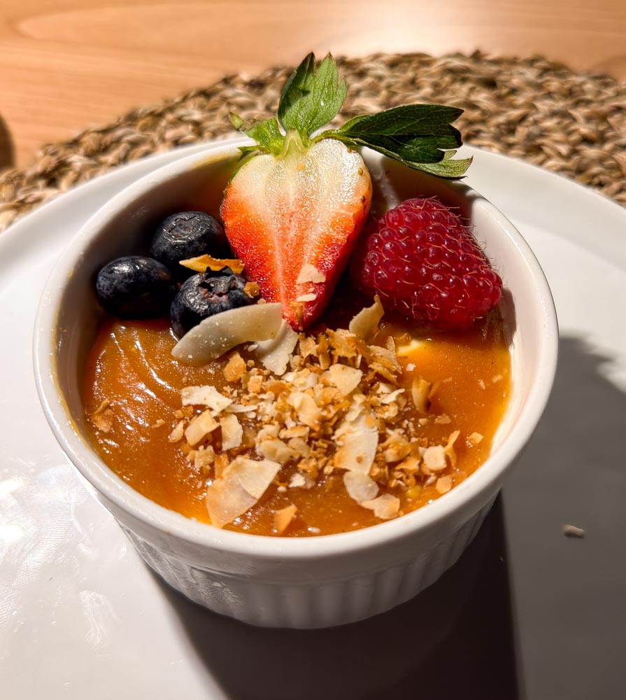 For dessert, she made a panna cotta topped with caramel and fresh berries. Yum!