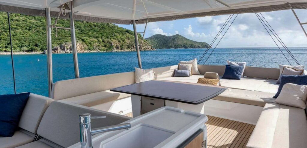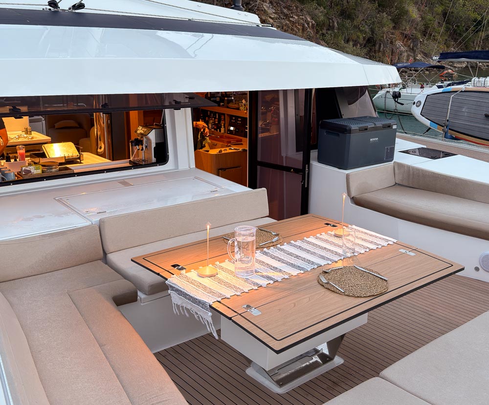 Our stunning boat this year is a Bali 5.8 named “Dream On”. It’s the same type of boat we used last year (Koru, a Bali 4.8), but larger. Dream On is about 58 feet long, compared to last year’s Koru, which was 48 feet. Other than the size difference, the layout and design of the two boats are very similar. I grabbed this photo from Dream On’s website..