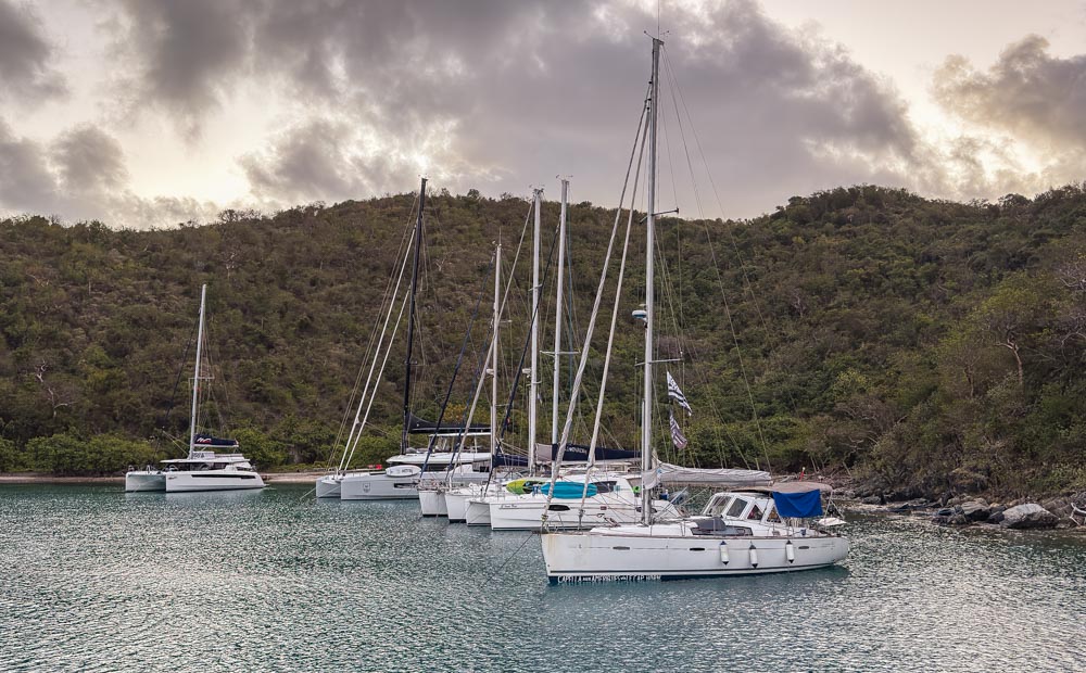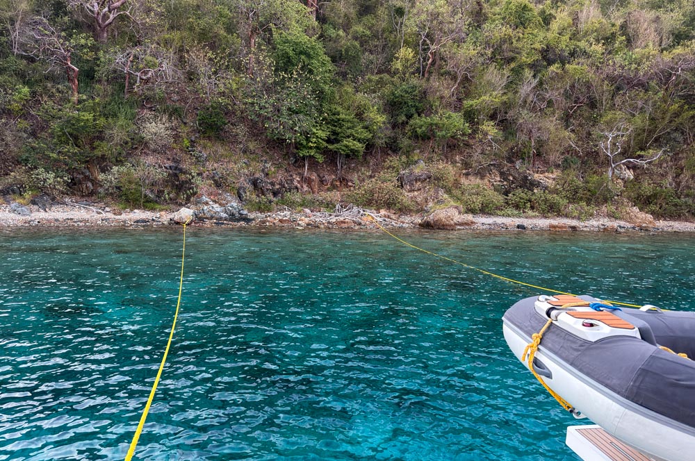 Our mooring spot in Little Harbor was interesting. They dropped the anchor, then Julia swam over to tie two ropes to the rocks and trees on the shore. All of the other boats did the same.