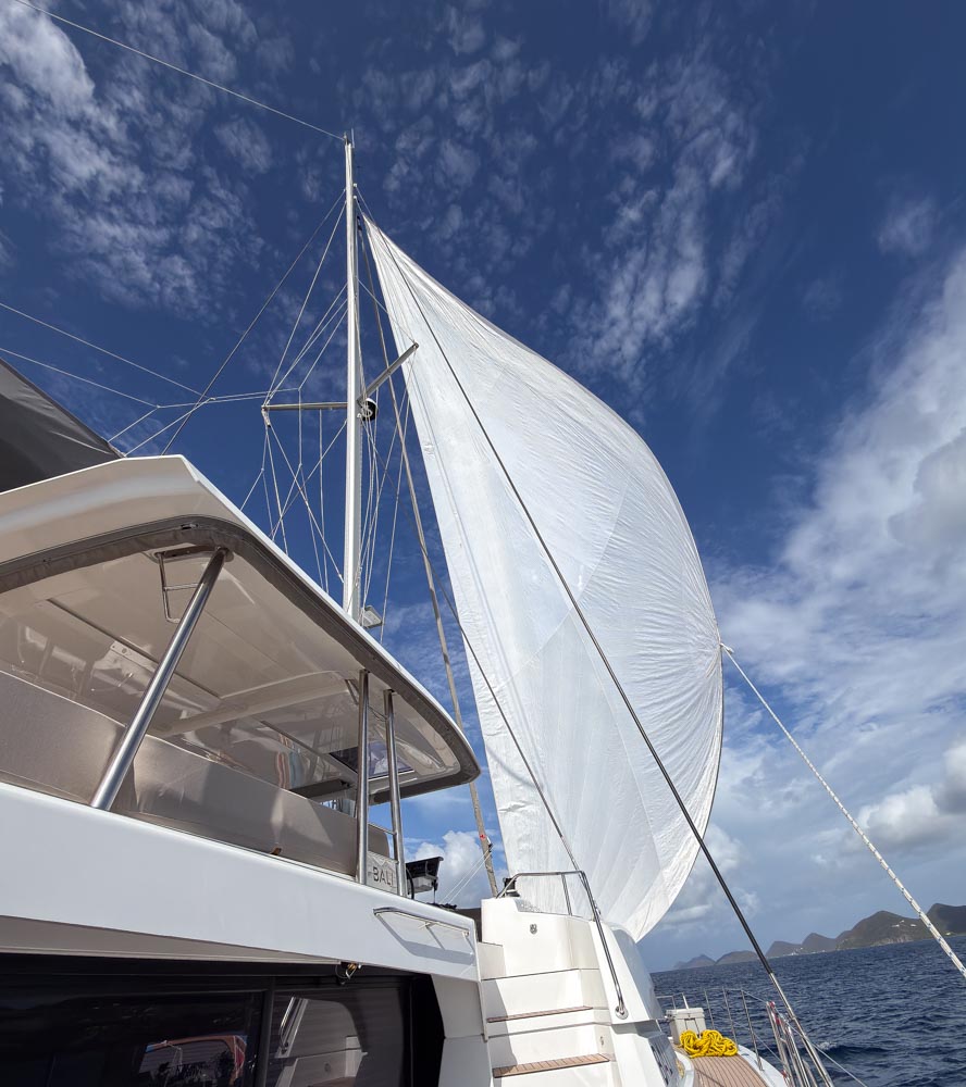 This morning, we left Little Harbour and headed to Brewers Bay. It’s been quite windy out, so Rob opened up our sail to use instead of the motor. It was beautiful to see the sail catching the wind. It’s hard to get a good photo of the sail, but here’s one…
