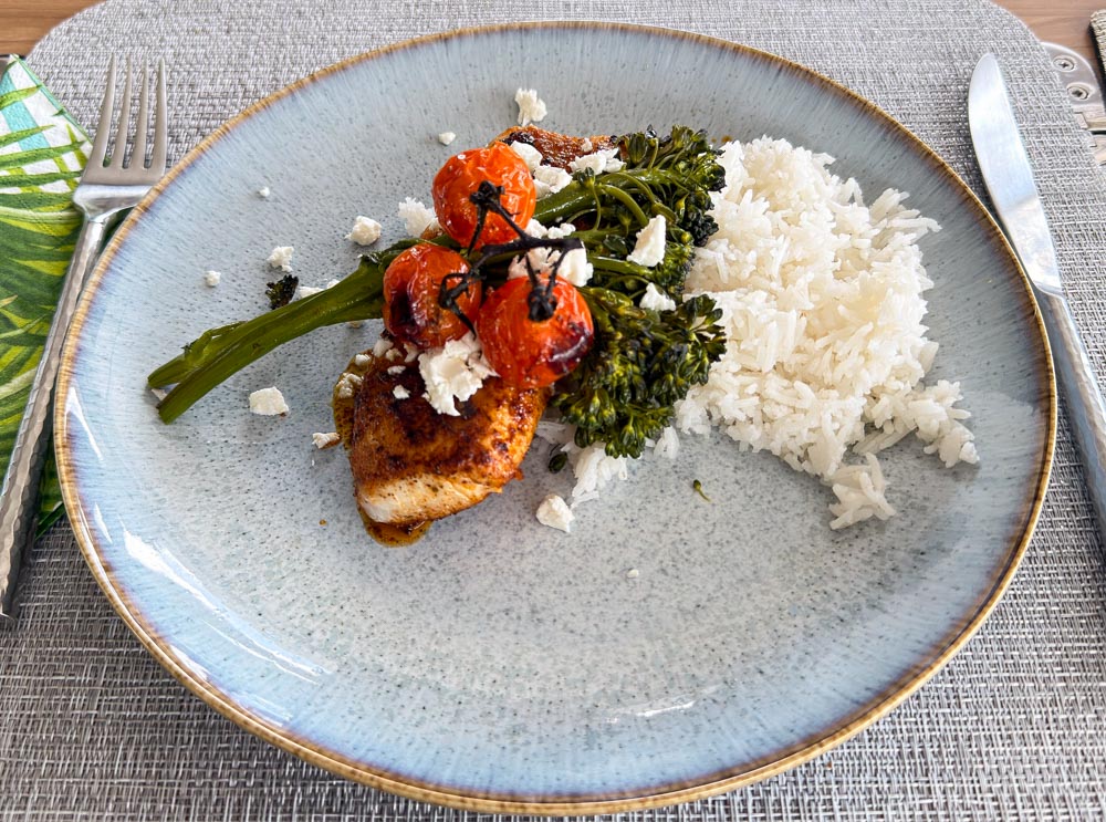 Once we anchored at Brewers Bay, Julia fed us another fabulous meal. This is Mahi Mahi with roasted tomatoes, broccolini and basmati rice. We practically licked our plates!