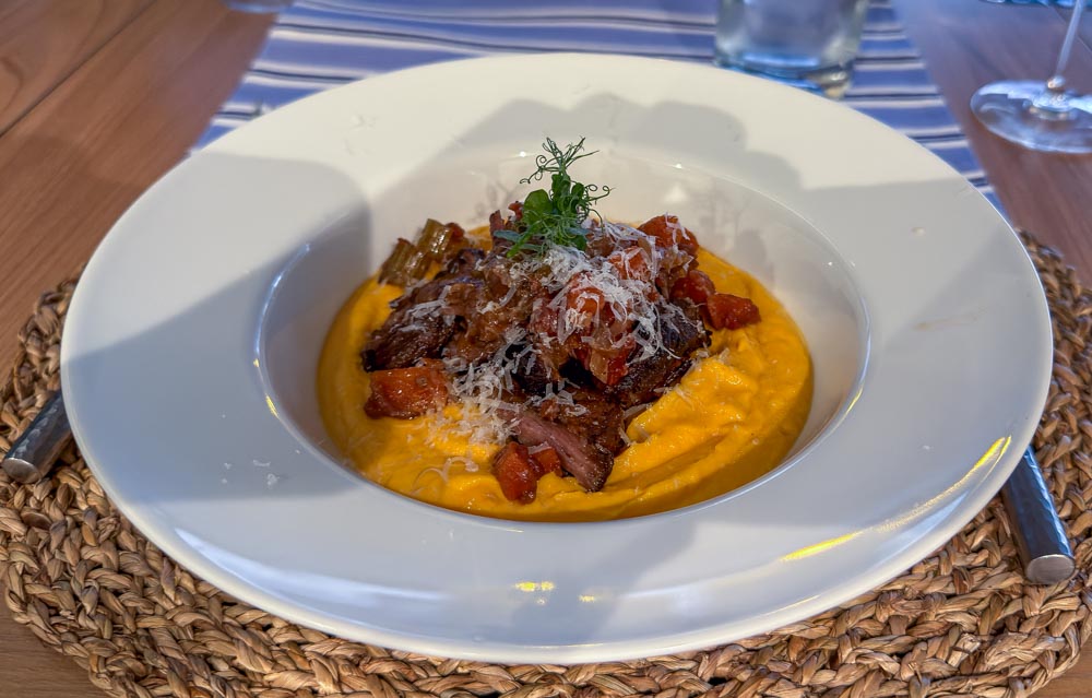 This evening, Julia created another delicious meal. We had short ribs over sweet potato puree. This was just so good!
